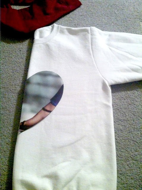 2. Fold the sweatshirt in half and line up the heart on sweatshirt.