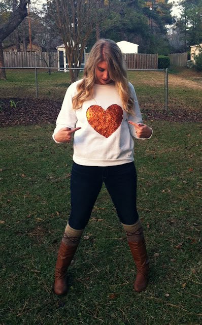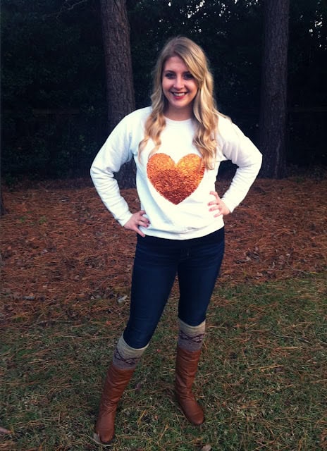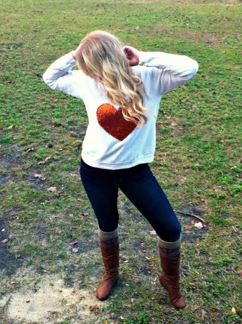 7. I did one coat and then let it dry. Once it was mostly dry I added another coat. Let it dry over night and voila! You have yourself a J. Crew heart sweater look-a-like!