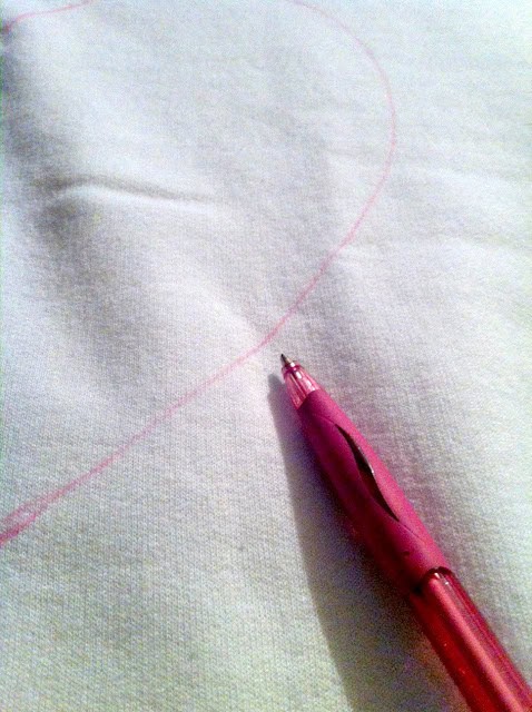 4. Open the sweater and finish tracing the heart.