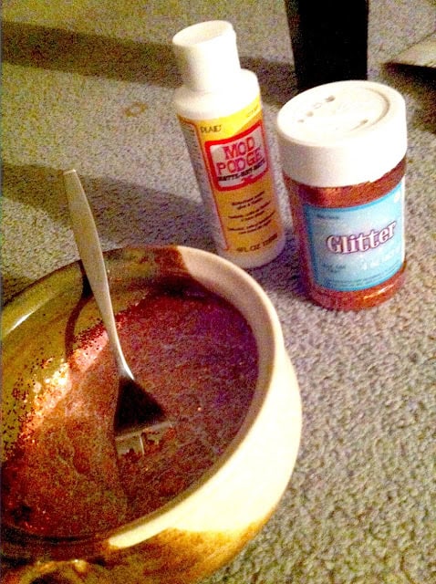 5. With the mod podge and glitter you can make however much you want, but just do half and half. If it seemed too thick to me, I just added some more mod podge.