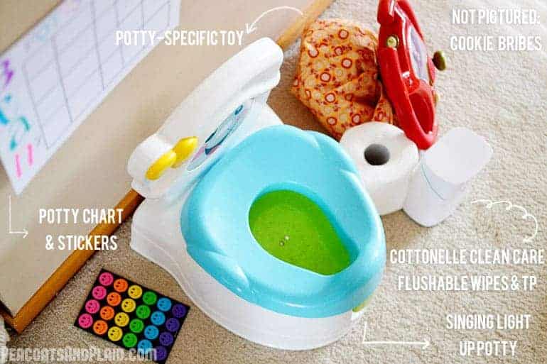 - Potty chart & stickers: for her to put a “happy face” sticker up every time she went in the potty.