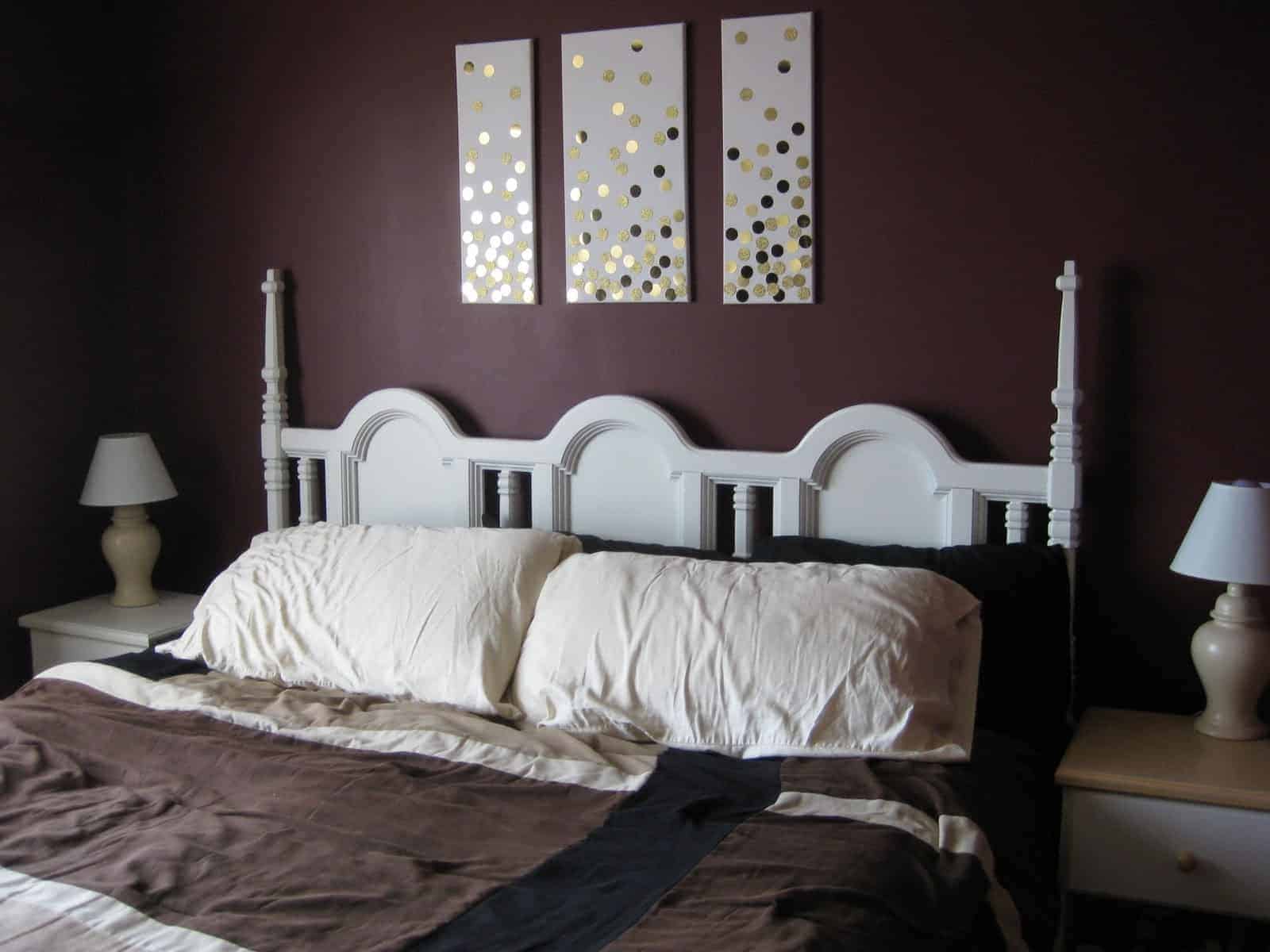 Love how the headboard looks against the deep paint on your wall! Gorgeous! Such a nice shape and what a steal! Love the artwork, too! Thanks for sharing.